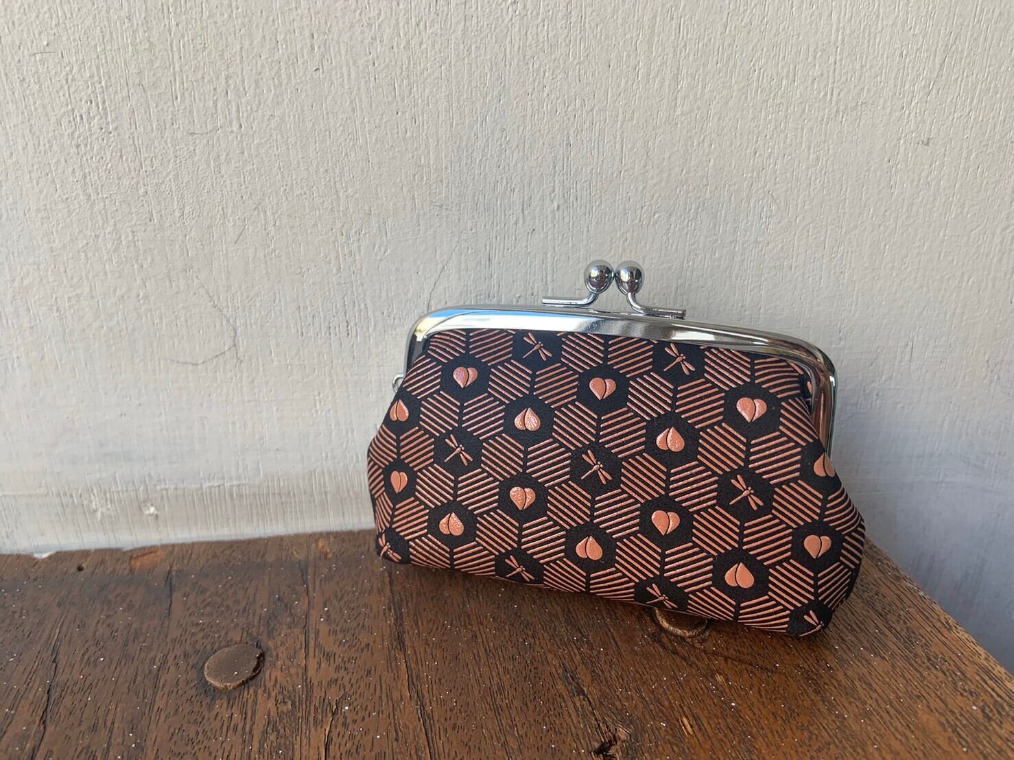 女性の手のひらにすっぽりと収まるサイズでも、中身がしっかり入るがま口の小銭入れ。大きく開くがま口はあなたが小銭を探すのを邪魔しません。